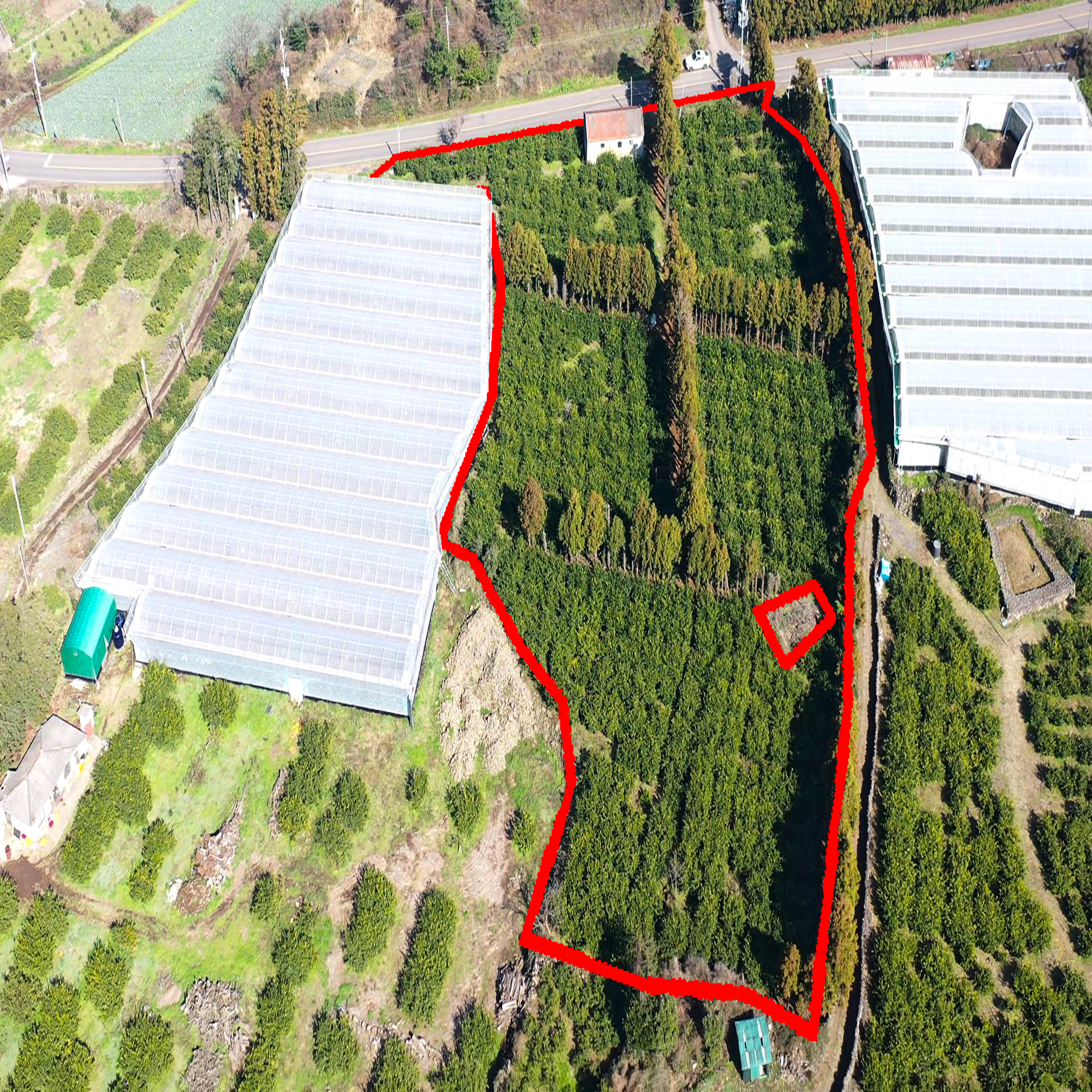 밀감과수원 입구에는 관리사 창고가 한 동 있는데, 면적은 약 82㎡(25평)정도 돼.