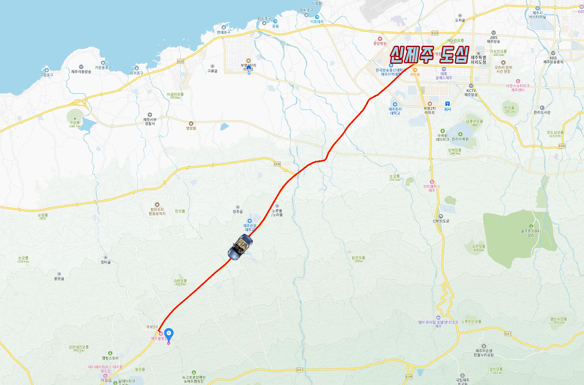 저기 보이는 평화로 때문이야. 음.. 저게 참~ 잘 뚫린 도로야!