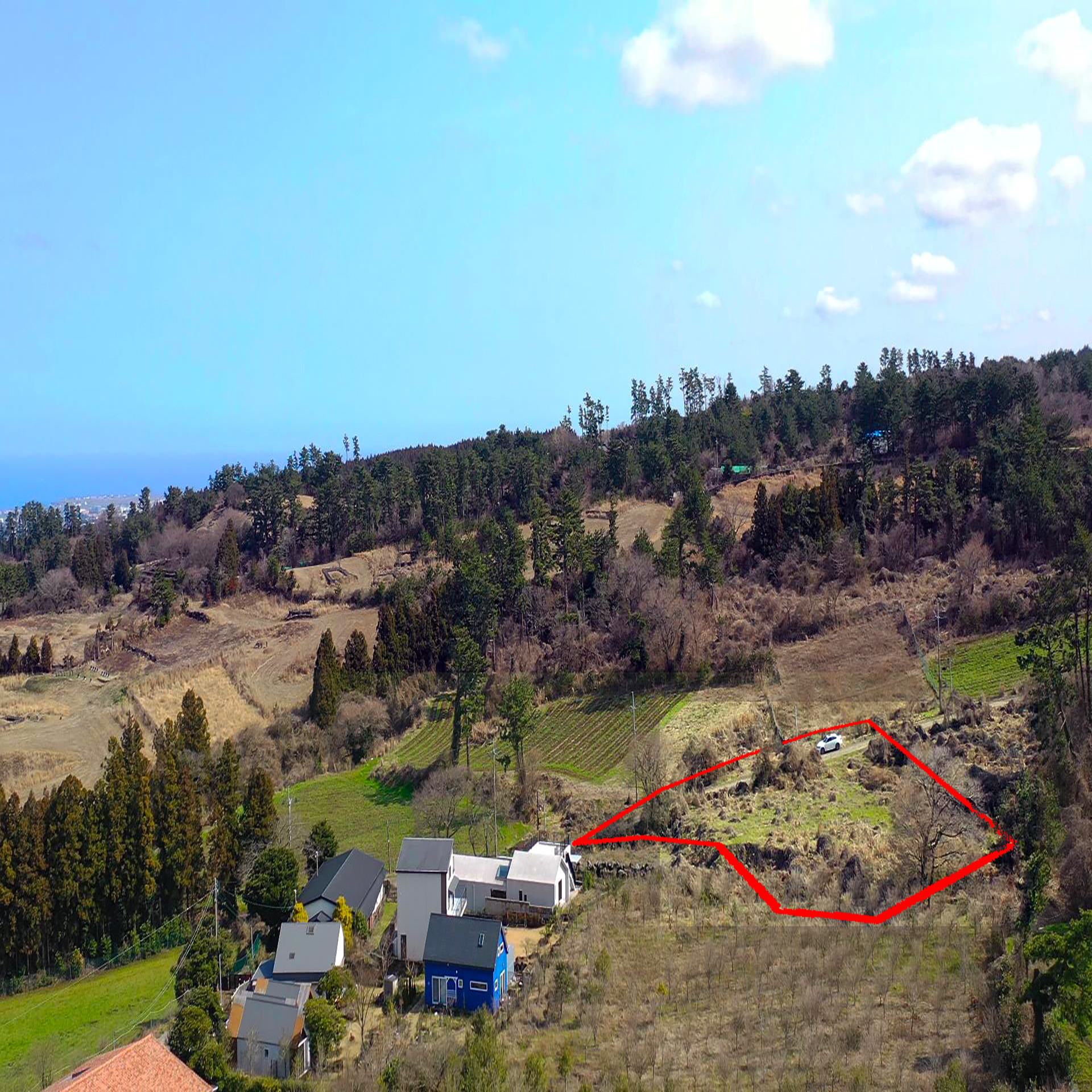 유수암 개척단지 남쪽 평화로에서 거친 경사면을 따라 약 400m를 오르면,