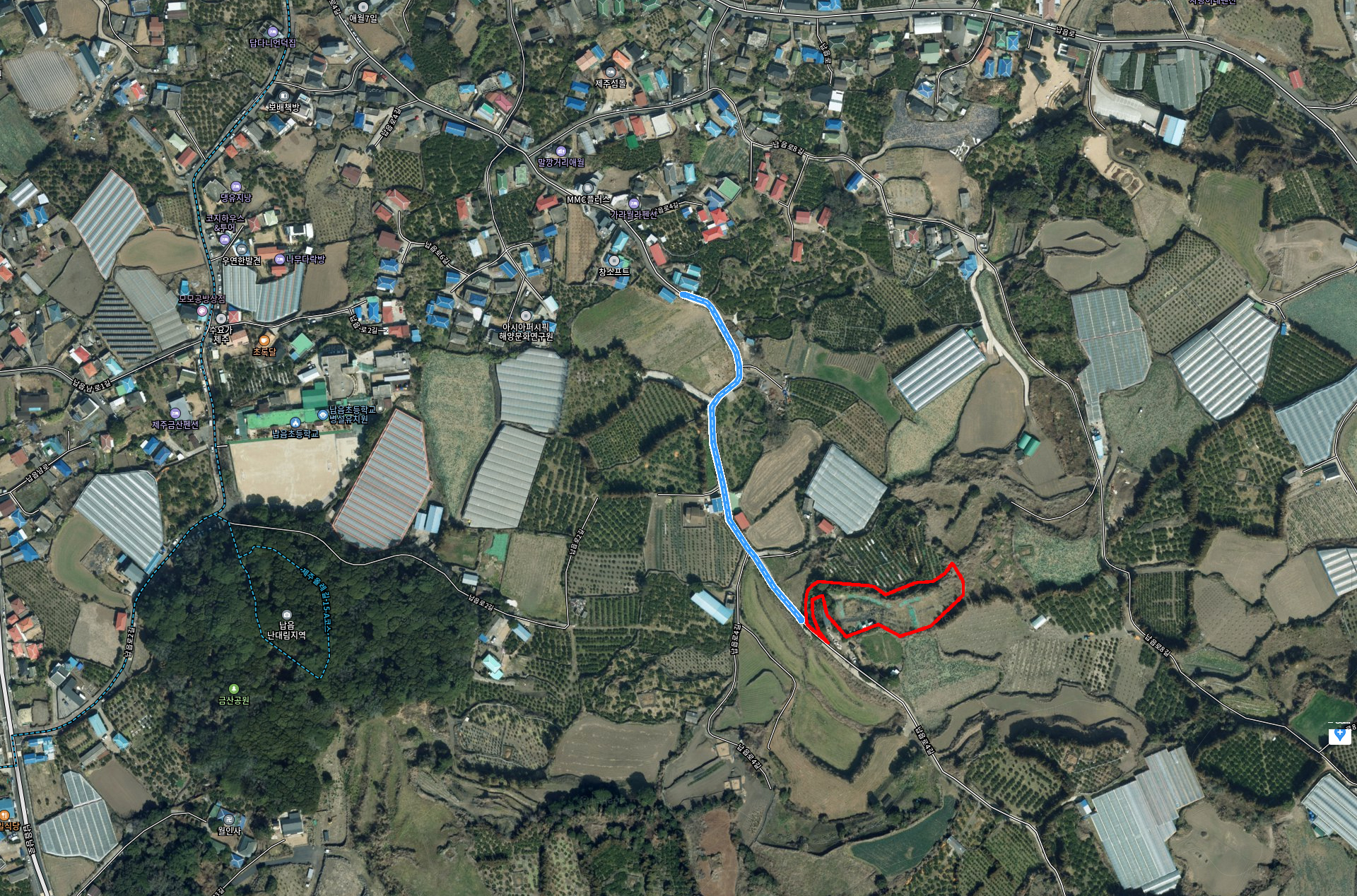 역사문화보전지역으로 지정해 뒀는데, 우리 땅 하고는 약 250M 정도 떨어져 있어.