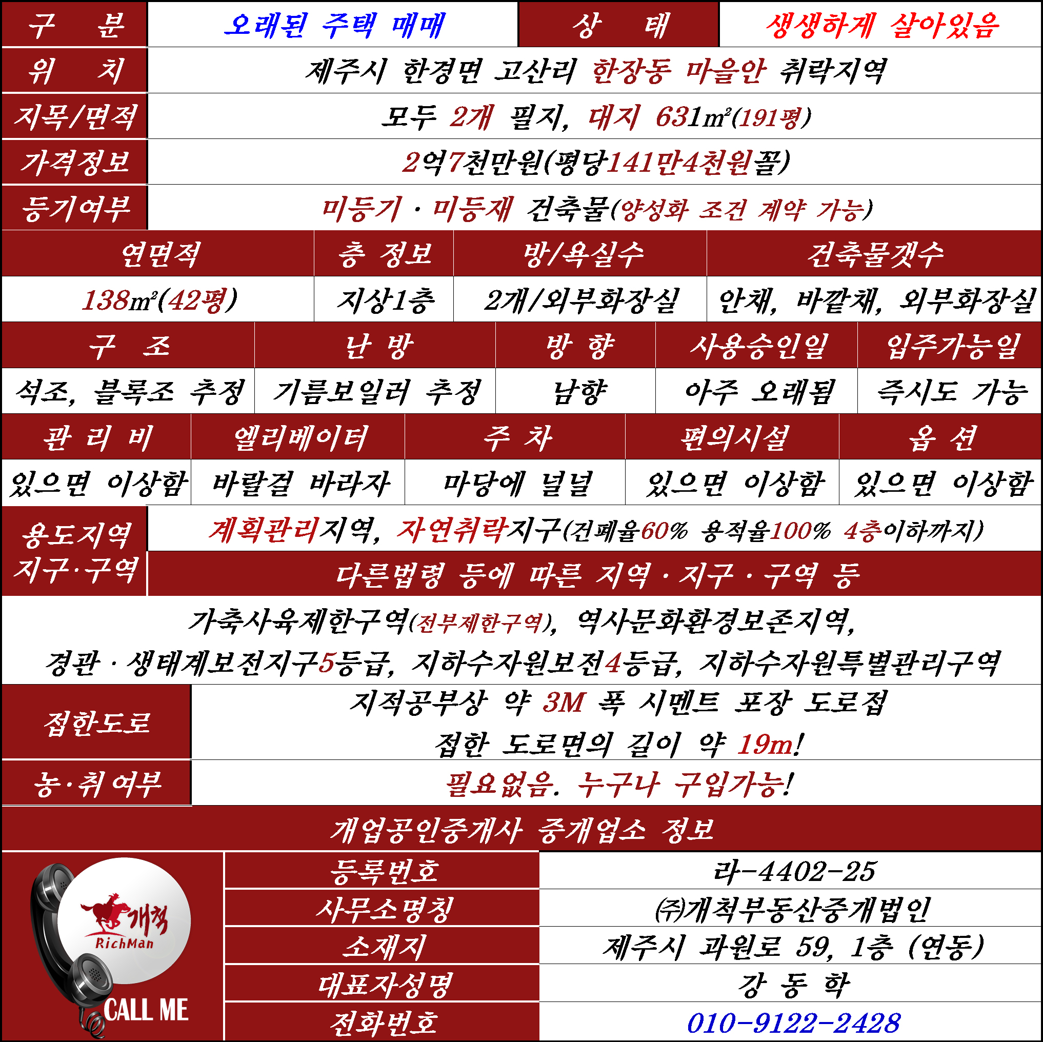한경면 고산리 한장동 마을 안에 있는 우리 폐가의 매매가는 얼마냐?