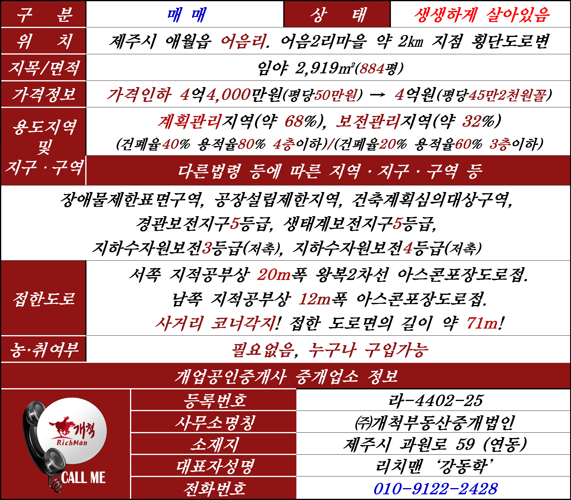 가격으로 애월읍 어음리를 다시 개척하는 거 맞지?! ^^