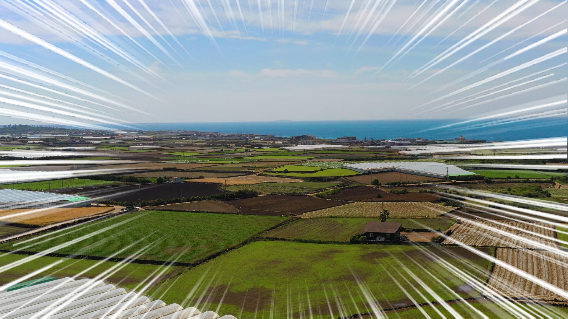 개인적으로 이런 풍경을 너무나 좋아라 하는데, 곡창지대에서 바다하고 산과 오름을 바라보고 있으면 경이롭다는 생각이 절로 들어서 기분까지 웅장해진다니까!