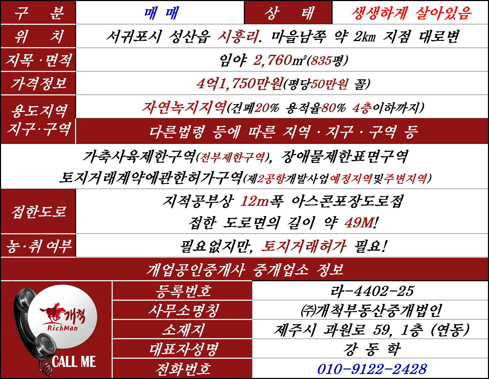알다시피 성산읍의 전부가 토지거래허가구역(2024-11-06)