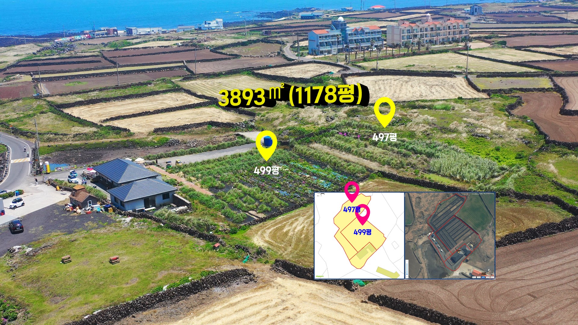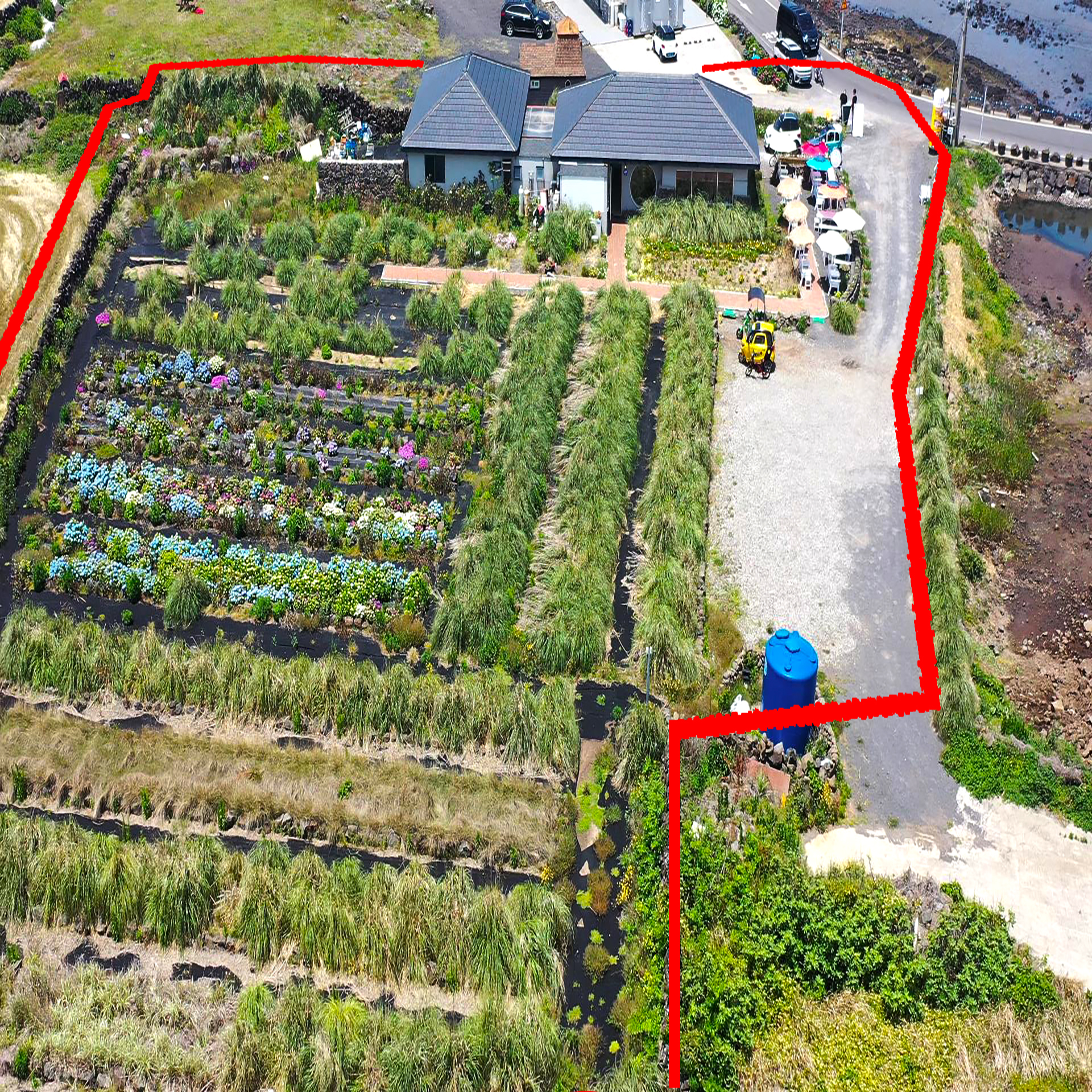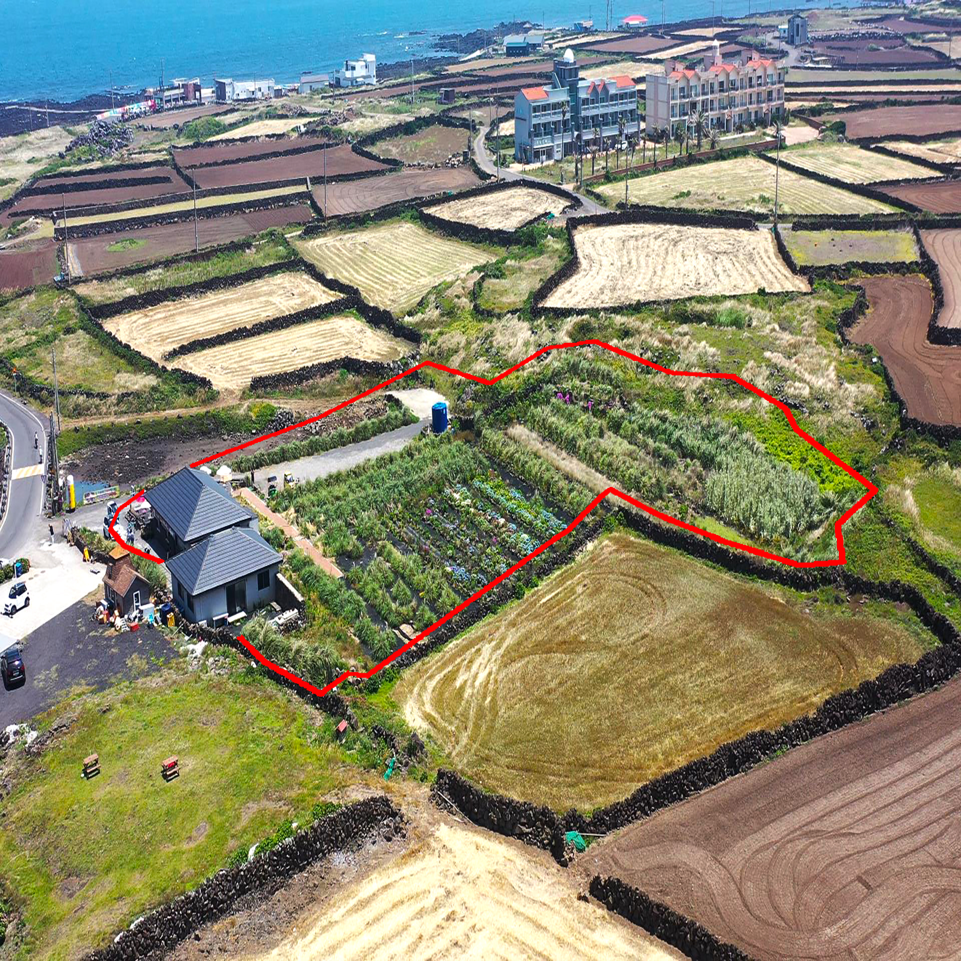 해안도로에 접해 있는 대지 600㎡(191평)안에는