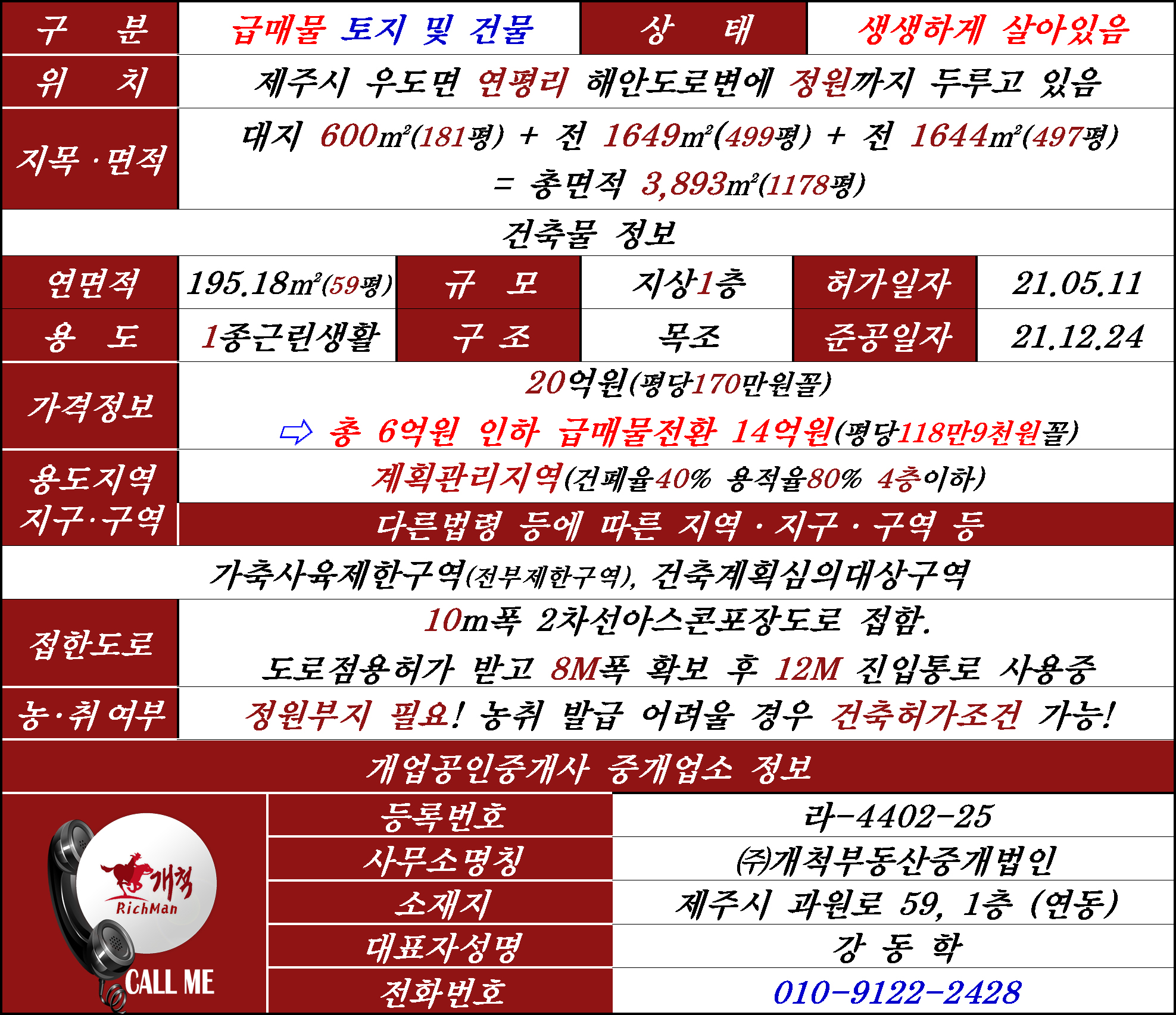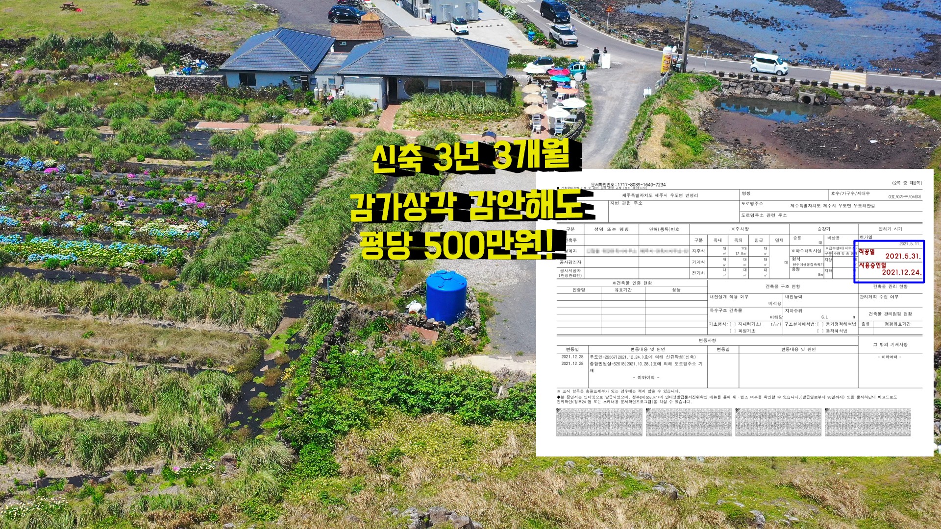 드디어 우도 해안도로의 꽃 정원 건물이 파격적으로 가격을 내렸어!