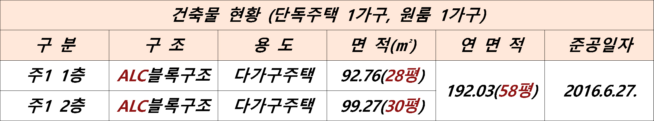 건물 전체의 연면적은 192.03㎡(58평)이 됩니다.
